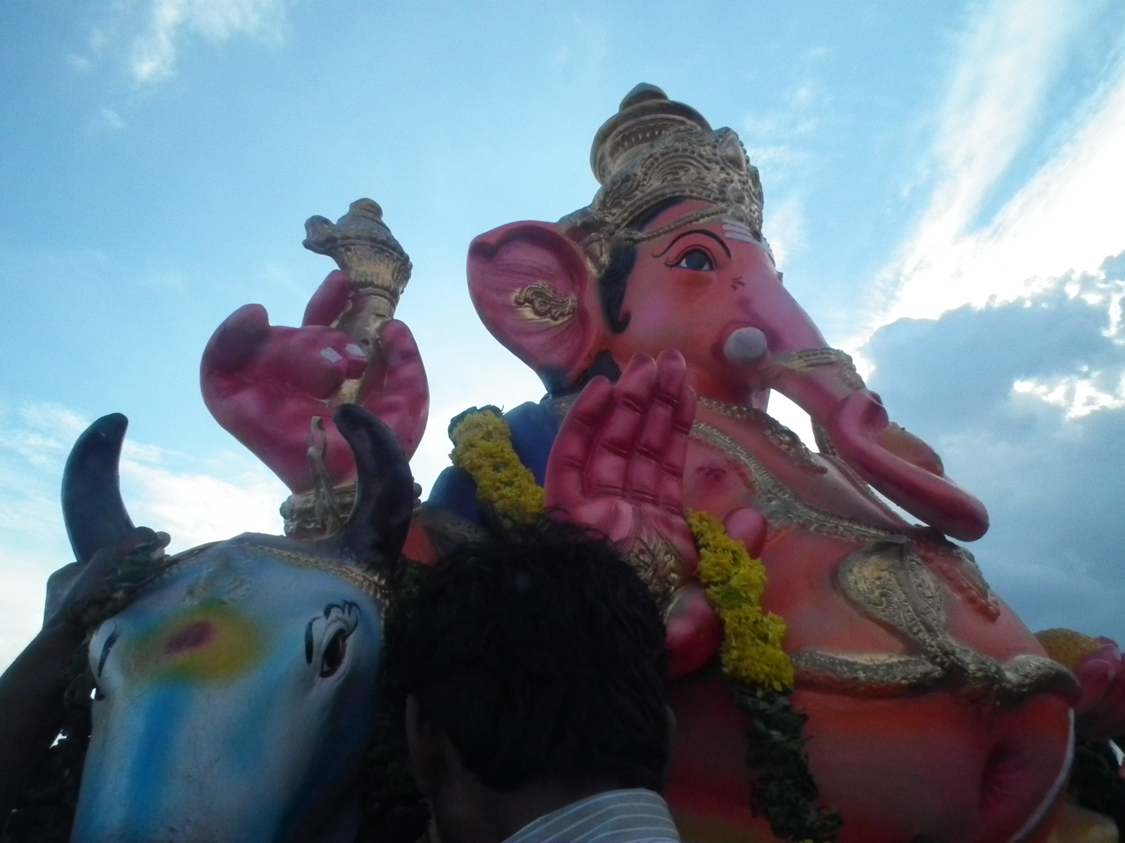 This annual celebration brings hundreds of elephant-themed icons of all sizes to the beach in heavy-duty rigs built for hauling huge payloads. There’s one road to the beach, and these vehicles are bumper-to-bumper for two or three miles, all lined up for the same purpose: delivering the beloved Remover of Obstacles to the sea. Hundreds, maybe thousands of people are lined up on the beach to watch. The statues are carried to the water line where prayers and dancing ensue, along with lighting ritual flames. Eventually dozens of hands grab a hold of each of these huge ceremonial sculptures and one-by-one they’re flung into the crashing waves and stiff current. The statue sinks and is swept away. This process gets repeated hundreds of times in one afternoon, all with the coordination and choreography you might see when the doors at Best Buy are open to the hordes at 3:00am on Black Friday.