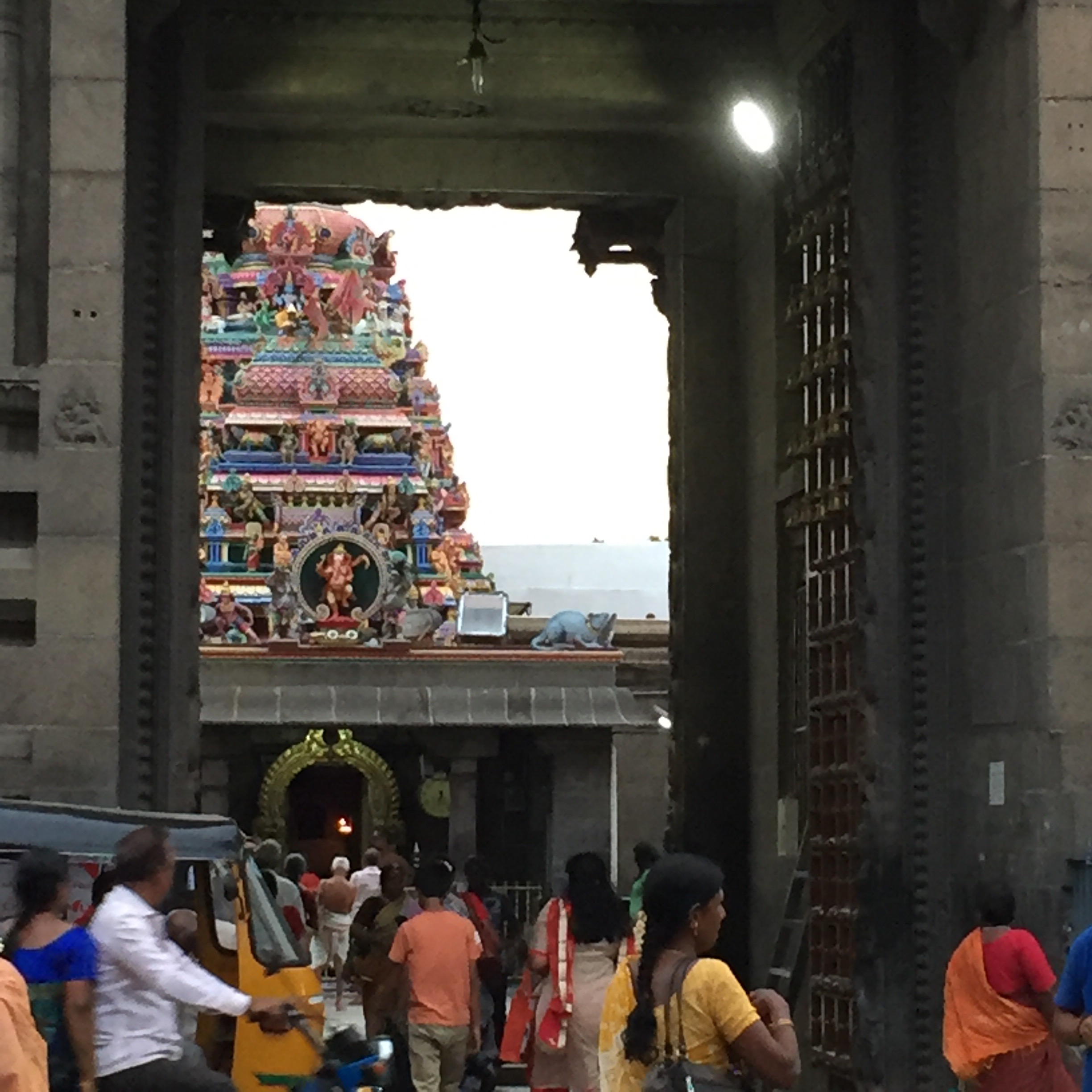 Three years ago, on the afternoon before school started, my wife and I (before we were married, before we were anything but same-aged colleagues to each other) happened to visit a prominent temple. It almost didn’t happen. We’d made plans to go to the new mall, but when we met at the end of the day, the mall was the last place either of us wanted to go. I don’t remember who suggested Kapaleeswarar Temple, but we agreed quickly and hopped in a tuk-tuk together. We had a lovely time that night. Each of us was struck by the unfamiliar appeal of the temple and the people in it. We didn’t get together as a couple for another seven months, and once we did that evening at the temple suddenly held much more meaning. At the end of the school year we went again, and I remember feeling compelled to propose to her there. We have come back to this place at the start of each year — tonight marks the fourth school-eve trip. While the temple itself is not a mystery to us in the same way, I found myself thinking on the way there tonight how strange it is that a visit here three years ago, that was not planned and nearly did not happen, could take on such meaning.